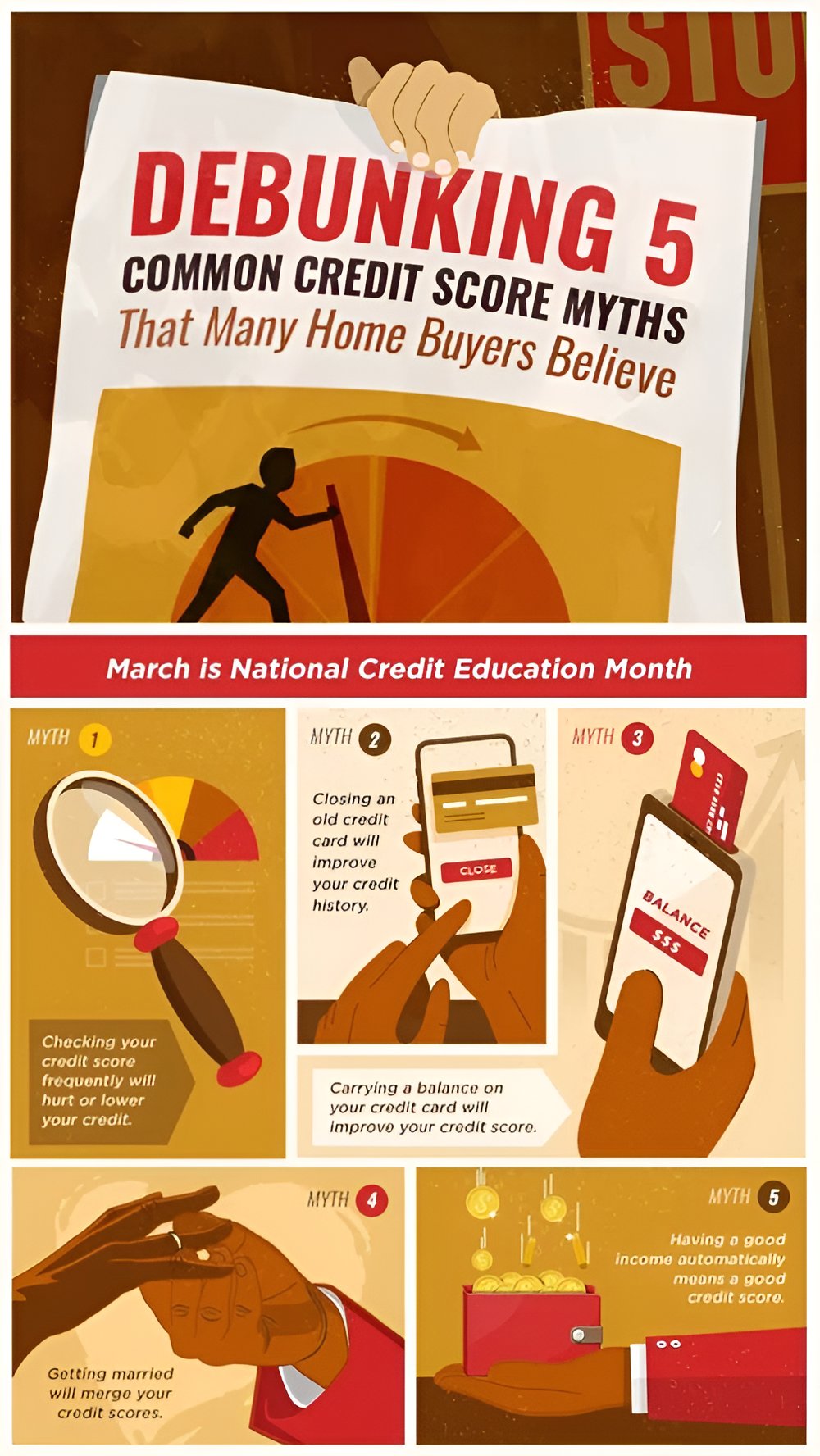 March is National Credit Education Month, which means now is the perfect chance to discuss some of the ins and outs of your credit score. And there are quite a few harmful myths or misconceptions surrounding it that many prospective borrowers believe.